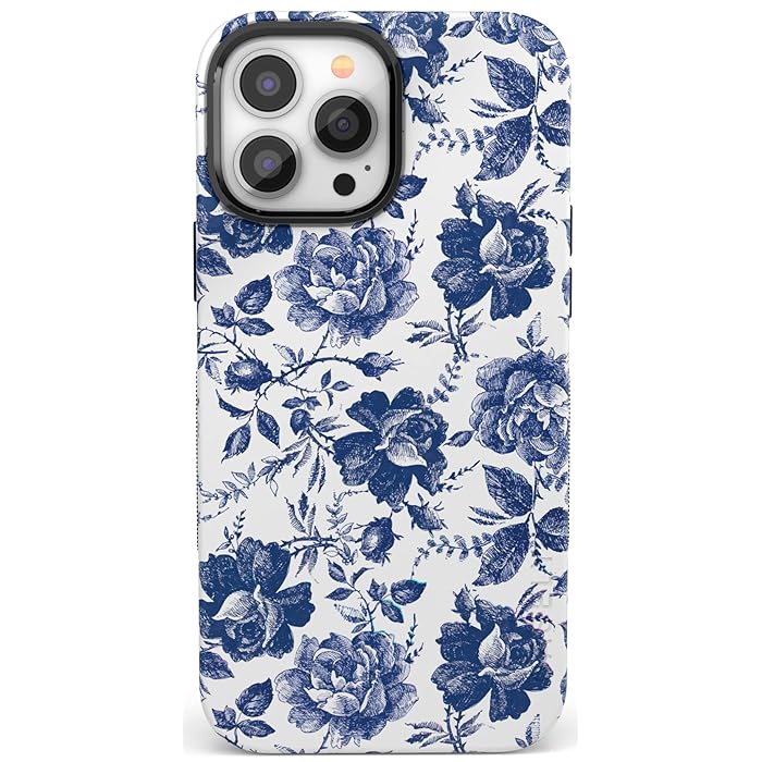 Buy Casely Iphone Rose To Fame 13 Pro Max Case Shock Absorbent Attractive Fun Compatible With Iphone 13 Pro Max Models Blue And White Rose Phone Case For